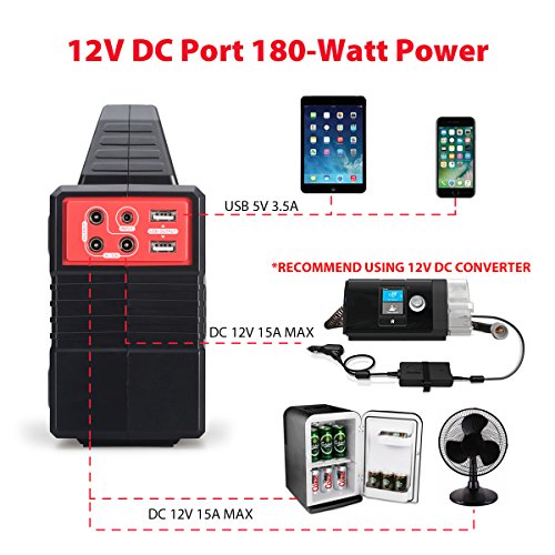 100-Watt Portable Generator Power Station, CPAP Battery Pack, Home Camping Emergency Power Supply Charged by Solar Panel/Wall Outlet/Car with Dual 110V AC Power Inverter, 3 DC 12V Ports, USB Ports