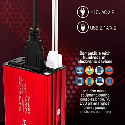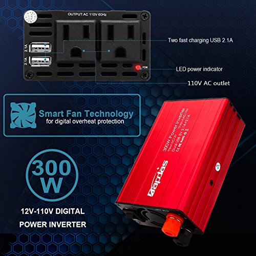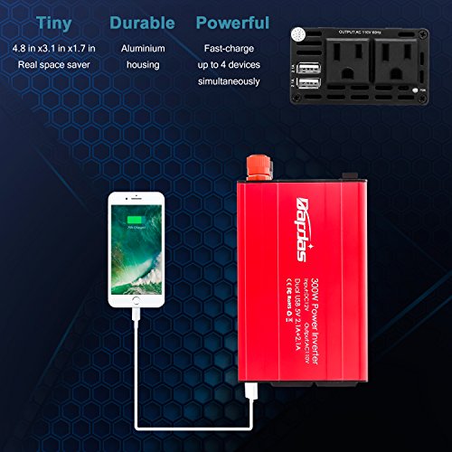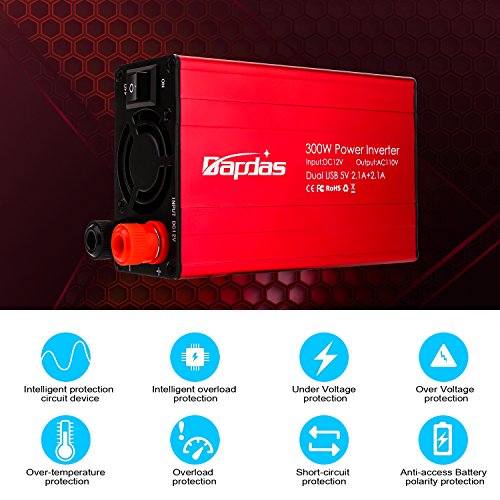 | Title | Bapdas 300W Car Power Inverter DC 12V to AC 110V Car Converter with 2 AC 110V US Sockets and 4.2A 2 USB Ports Car Charger-New Model |