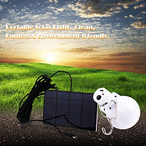 - This solar light relies on solar energy, which is clean, endless and environment-friendly. In daytime, when there is sunshine, the solar panel can convert the solar energy to electric energy and store it in the battery. The charged bulb can be used as a mobile lighting lamp.