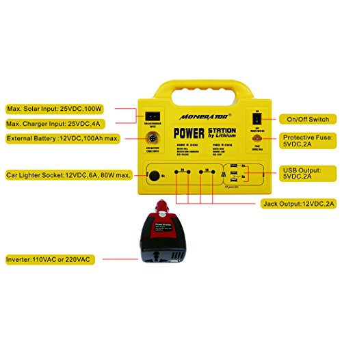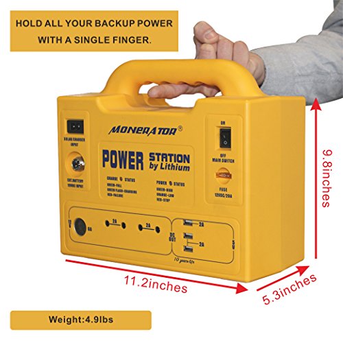 | Title | monerator 5lbs Portable Generator Power Station with 128 Wh Lithium Battery, 12V DC/110V AC Outputs, USB, Lighting, Car Lighter Ports for Emergency, Camping & Outdoor Activities Gusto 10 |
