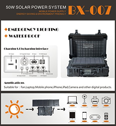 Risen Black Color Portable 50W-BX-007 Solar Generator 5 Solar Panel Solar Power Energy System/Case for Home Use, Military, Travel, Outdoor Activities, Emergency and Disaster Preparedness